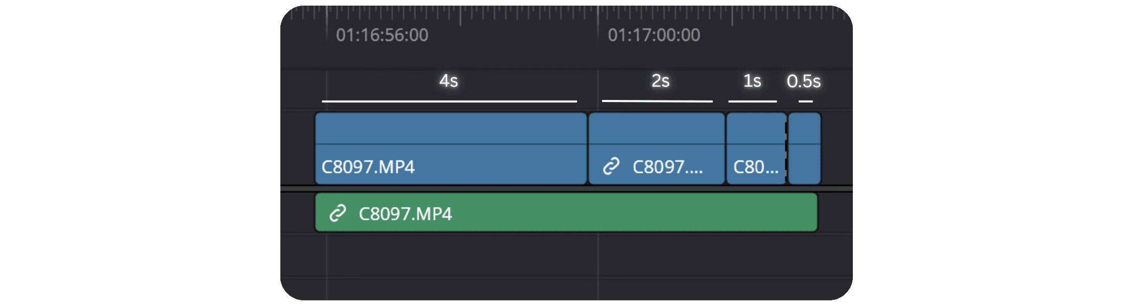 4s → 2s → 1s → 0.5sX-Axis: Timeline progression (cut count moves forward cleanly)